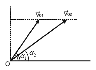 Hai vật được đồng thời ném từ mặt đất lên với vận tốc ban đầu như hình vẽ.