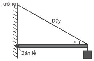 Một thanh có độ dài L, trọng lượng 10 N, được treo nằm ngang vào tường như hình vẽ. Một