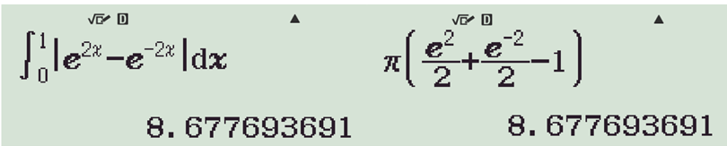 Cho hình phẳng A giới hạn bởi các đường y = ex, y = e-x và x = 1, Thể tích của khối tròn xoay