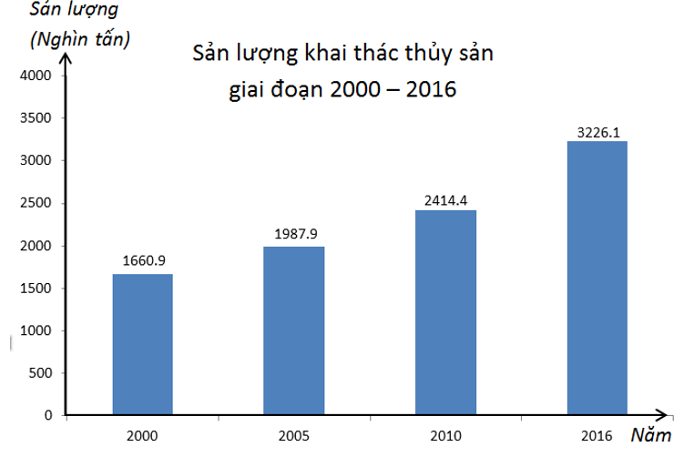 Cho biểu đồ dưới đây.Sản lượng khai thác thủy sản năm 2016 tăng bao nhiêu phần trăm so với