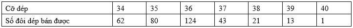 Một cửa hàng dép ghi lại số đôi dép đã bán cho nữ giới trong một quý theo các cỡ khác nhau như sau: