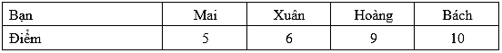Tính trung bình cộng điểm của 4 học sinh