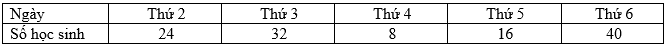 Số học sinh khối 7 đến thư viện trường mượn sách vào các ngày trong tuần được thống kê trong bảng sau: