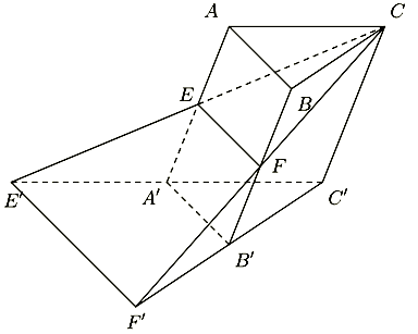 Cho hình lăng trụ tam giác \(ABC.A'B'C'.\) Gọi \(E\) và \(F\) lần lượt là trung điểm của các cạnh