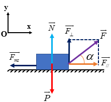 Một người dùng lực F hợp với phương nằm ngang một góc \(\alpha = {60^0}\) để kéo vật có