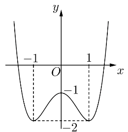 Cho hàm số \(f(x) = a{x^4} + b{x^2} + c\) có đồ thị là đường cong trong hình bên dưới.