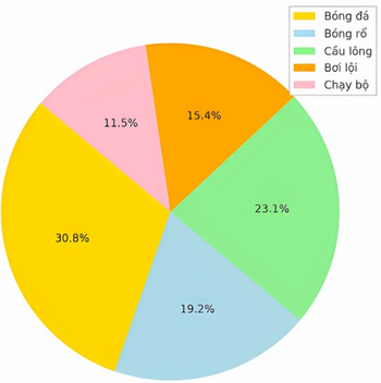 Cho biểu đồ thể hiện tỉ số phần trăm số học sinh tham gia các môn thể thao của một