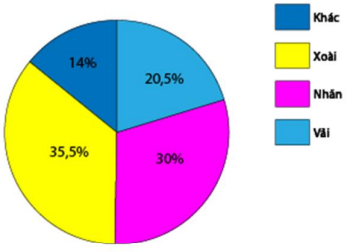 Biểu đồ dưới đây cho biết tỉ số phần trăm diện tích trồng cây ăn quả ở một khu vườn.