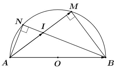 Cho nửa đường tròn với đường kính AB = 2R. Gọi M và N là hai điểm trên nửa đường tròn sao cho hai dây cung AM và BN cắt nhau tại một điểm I.