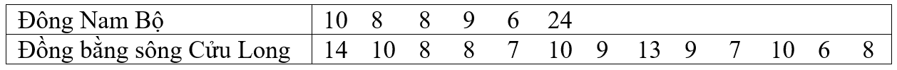 c) Sử dụng trung vị để so sánh số đơn vị hành chính cấp quận/huyện/thị xã của các tỉnh/thành phố ở hai khu vực.