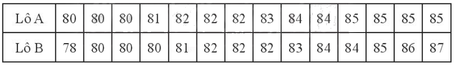 Kiểm tra khối lượng của một số quả măng cụt của hai lô hàng A và B được kết quả như sau