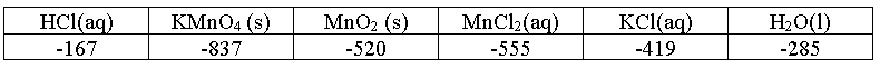 16HCl (aq) + 2KMnO4(s) ⟶ 2MnCl2 (aq) + 2KCl (aq) + 8H2O(l) + 5Cl2 (g) (1)