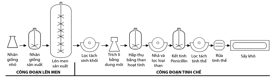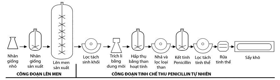 Quá trình sản xuất chất kháng sinh được tóm tắt như sau: