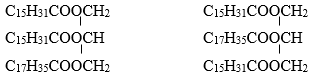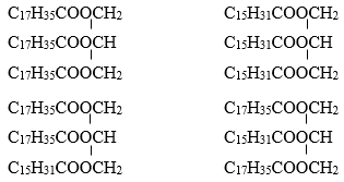 Cho glixerol phản ứng với hỗn hợp axit béo gồm C17H35COOH và C15H31COOH (H2SO4 làm xúc tác), số