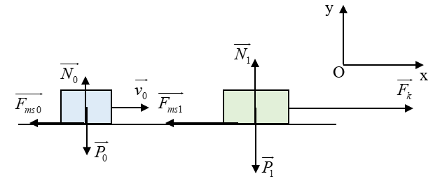 Một đoàn tàu đang chuyển động với vận tốc không đổi \({v_0}\) thì một số toa cuối (chiếm \(\dfrac{1}{4}\) khối lượng đoàn tàu) bị cắt khỏi đoàn tàu. Hỏi khi các toa đó dừng lại thì vận tốc của các toa ở phần đầu là bao nhiêu? Biết rằng lực kéo đoàn tàu không đổi, hệ số ma sát lăn \({\mu _l}\) giữa đường ray với mọi phần của đoàn tàu là như nhau và không đổi.