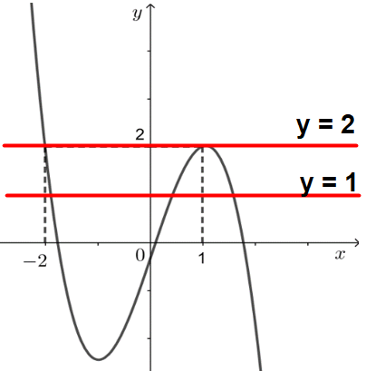 + Sử dụng tương giao đồ thị hàm số: Số nghiệm của phương trình f(x) = m là số giao điểm của đồ thị hàm số y = f(x) và đường thẳng y = m.