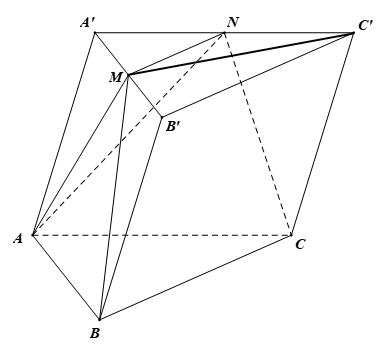 Tính \({V_{A.BCNM}} = {V_{ABC.A'B'C'}} - {V_{A.A'MN}} - {V_{B.MB'C'}} - {V_{B.MNC'}}\).