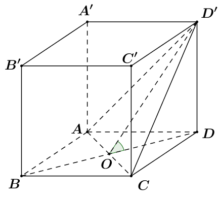 Cho hình lập phương ABCD.A’B’C’D’ có cạnh bằng a. Gọi \(\alpha \) là góc giữa (ACD’) và (ABCD). Giá trị của \(\tan \alpha \) bằng: