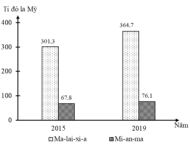 Cho biểu đồ:GDP CỦA MA-LAI-XI-A VÀ MI-AN-MA NĂM 2015 VÀ NĂM 2019(Số liệu theo Niên giám thống kê
