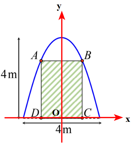 Đợt thi đua 26/3 Đoàn trường THPT Nho Quan A có thực hiện một dự án ảnh trưng bày trên một pano có dạng parabol như hình vẽ. Biết rằng Đoàn trường sẽ yêu cầu các lớp gửi hình dự thi và bán lên khu vực hình chữ nhật ABCD, phần còn lại sẽ được trang trí hoa văn phù hợp. Chi phí dán hoa văn là 150.000 đ trên 1m2 bảng. Hỏi chi phí thấp nhất cho việc hoàn tất hoa văn trên pano sẽ là bao nhiêu (kết quả làm tròn lấy phần nguyên).