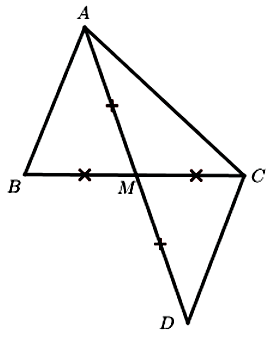 Cho \(\Delta ABC\) có \(AB < AC\). Gọi \(M\) là trung điểm của \(BC\). Trên tia đối của tia \(MA\) lấy một điểm sao cho \(MA = MD\). So sánh \(\angle ACB\) và \(\angle BCD\).