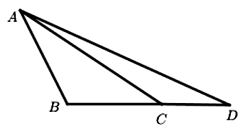Cho \(\Delta ABC\) có \(\angle B > 90^\circ \). Gọi \(D\) là một điểm trên tia đối của tia \(CB\). Chứng minh rằng: \(AB < AC < AD\)