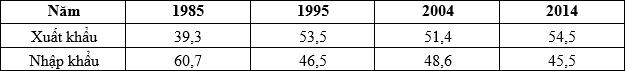 Cho bảng số liệu: Cơ cấu giá trị xuất, nhập khẩu của Trung Quốc qua một số năm (Đơn vị: