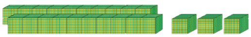 Đếm số khối chục nghìn và khối nghìn rồi viết số.