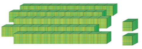 Đếm số khối chục nghìn và khối nghìn rồi viết số.