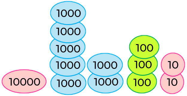 Đếm số thẻ 10 000, 1000, 100 và 10.