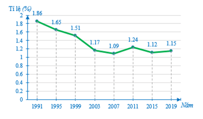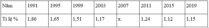 Tỉ lệ tăng dân số Việt Nam trong một số năm gần đây được cho trong bảng sau: