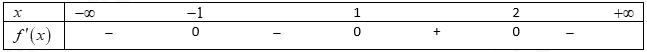 Cho hàm số \(y = f\left( x \right)\) liên tục trên \(\mathbb{R}\) và có đạo hàm \(f'\left( x \right) = {\left( {x + 1} \right)^{2022}}{\left( {x - 1} \right)^{2023}}\left( {2 - x} \right)\). Hỏi hàm số \(y = f\left( x \right)\) đồng biến trên khoảng nào dưới đây?