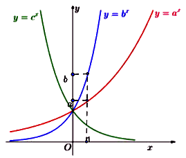 Hình dưới đây là đồ thị của ba hàm số \(y = {a^x},y = {b^x},y = {c^x}\,\,\left( {0 < a,b,c \ne 1}