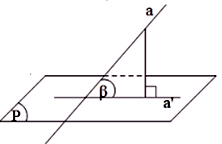 Góc giữa đường thẳng \(a\) và mặt phẳng \(\left( P \right)\) là góc giữa đường thẳng \(a\) và \(a'\).