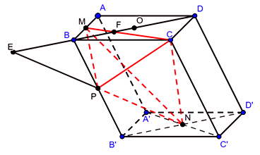 Cho hình hộp \(ABCD.A'B'C'D'\) có thể tích bằng \(V\). Gọi \(M,N,P\) lần lượt là trung điểm của