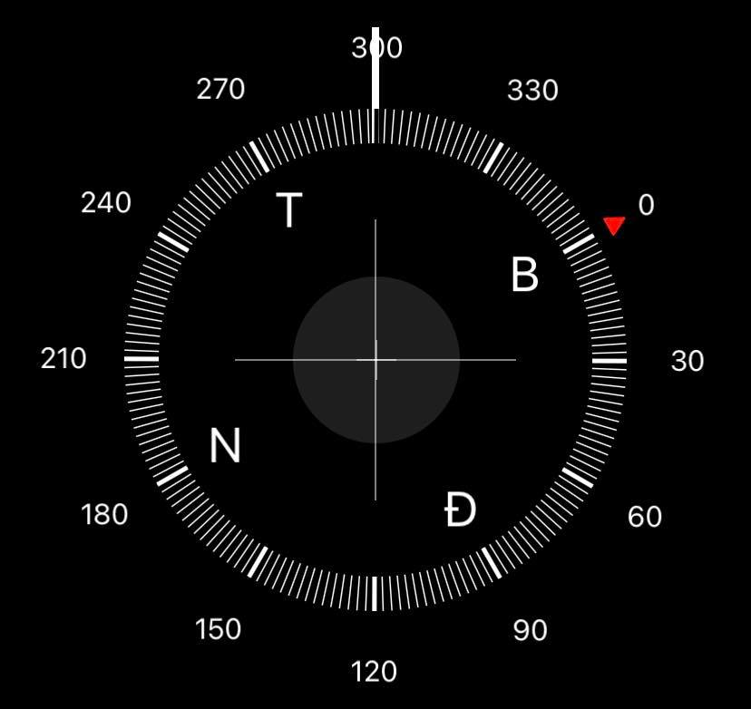 Dựa vào hình ảnh la bàn dưới đây, xác định hướng chỉ của la