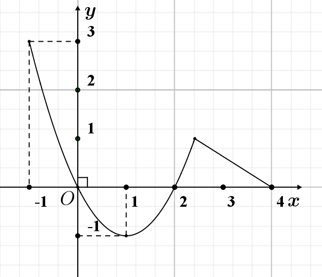Cho hàm số \(y = f\left( x \right)\) liên tục trên đoạn \(\left[ { - 1;4} \right]\) và có đồ thị như hình vẽ dưới đây