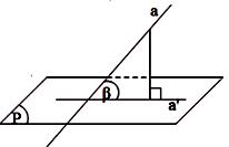 Góc giữa đường thẳng \(a\) và mặt phẳng \(\left( P \right)\) là góc giữa đường thẳng \(a\) và \(a'\).