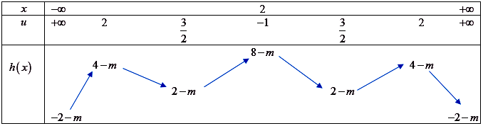 +) Khảo sát hàm số \(h\left( x \right) = 2f\left( {{x^2} - 4x + 3} \right) - m\,\,\,\), từ đó đánh giá m để hàm số \(g\left( x \right)\) có GTLN.