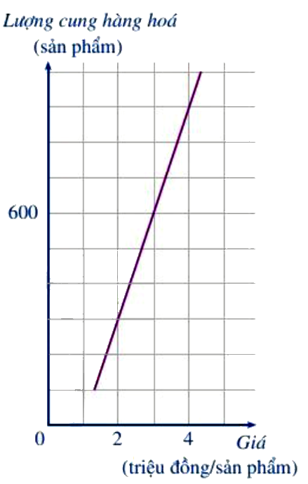 Đồ thi ở Hình bên cho thấy sự phụ thuộc của lượng hàng hóa được sản xuất (cung) (đơn vị: sản phẩm) bởi giá bán (đơn vị: triệu đồng/sản phầm) đối với một loại hàng hóa.