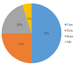 Quan sát biểu đồ tìm tỉ lệ phần trăm số lượng cam và mít.