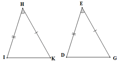 Cho tam giác HIK và tam giác DEG có IH = DE, \(\widehat H = \widehat E\),HK = EG. Phát biểu nào sau đây là đúng: