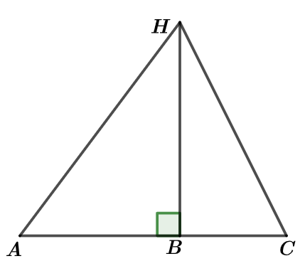 Cho ba điểm \(A,\,B,\,C\) thẳng hàng và \(B\) nằm giữa \(A\) và \(C.\) Trên đường thẳng vuông góc với \(AC\) tại điểm \(B\) ta lấy điểm \(H.\) Khi đó: