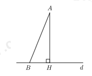 Cho đường thẳng \(d,\) điểm \(A\) không thuộc \(d,\) kẻ \(AH\) vuông góc với \(d\) ( \(H\) thuộc \(d\)), điểm \(B\) bất kì thuộc \(d\) ( \(B\) khác \(H\) )