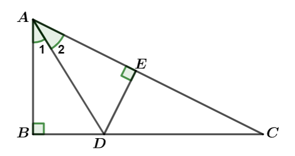 Cho \(\Delta ABC\) vuống tại \(B,\) có \(AD\) là tia phân giác của \(\angle BAC\,\left( {D \in BC} \right).\)