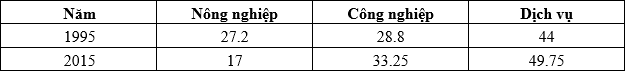 Cho bảng số liệu: Cơ cấu GDP của nước ta năm 1991 và năm 2001 (ĐVT: %)