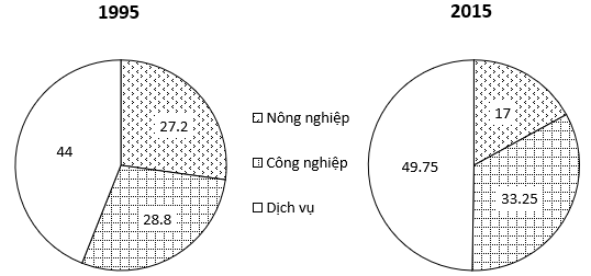 a, Vẽ biểu đồ hình tròn thể hiện cơ cấu GDP của nước ta năm 1995và 2015?