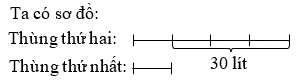 Có hai thùng dầu, thùng thứ nhất đựng ít hơn thùng thứ hai 30 lít dầu. Biết số lít dầu ở