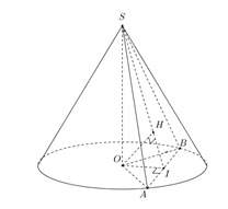Cho hình nón có chiều cao và bán kính đáy đều bằng \(1\). Mặt phẳng \(\left( P \right)\) qua đỉnh của hình nón và cắt đáy theo dây cung có độ dài bằng \(1\). Khoảng cách từ tâm của đáy tới mặt phẳng \(\left( P \right)\) bằng