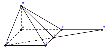 Cho hình chóp \(S.ABCD\) có đáy\(ABCD\) là hình chữ nhật với \(AB = a\),\(AD = 2a\), \(SA \bot (ABCD)\) và \(SA = a\). Gọi \(N\) là trung điểm của \(CD\). Tính khoảng cách từ \(A\) đến mặt phẳng \(\left( {SBN} \right)\).